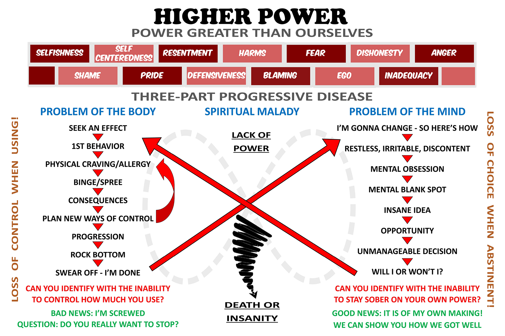 It's a way of visually explaining the 3-part disease of addiction and the solution.